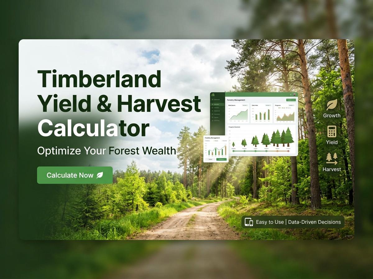 Maximize your forestry ROI with our Timberland Yield & Harvest Calculator. Accurately project timber volumes, estimate future harvest values, and optimize your cutting schedules. Start making data-driven land management decisions today.