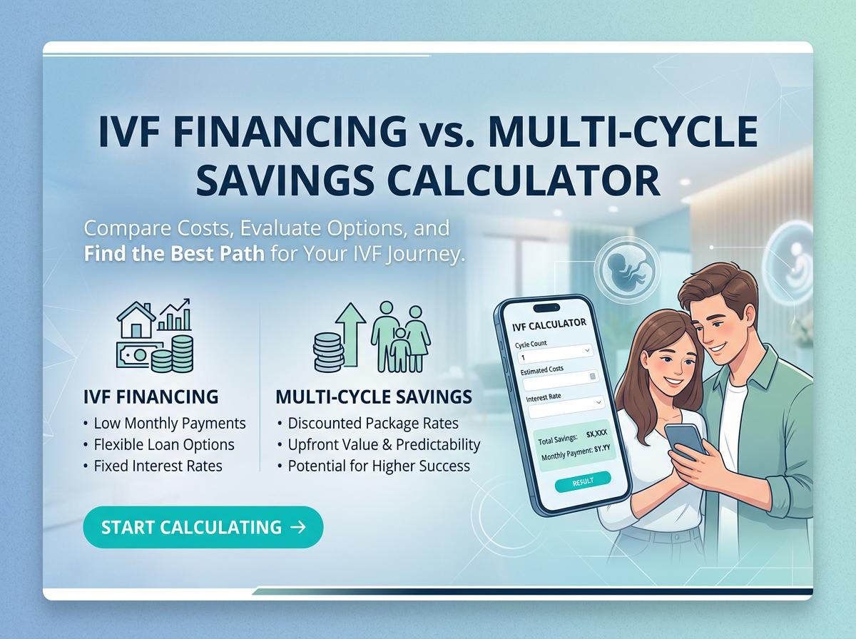 Use our IVF Financing vs. Multi-Cycle Savings Calculator to compare the true cost of fertility loans versus multi-cycle discount packages. Estimate your monthly payments, uncover hidden fees, and find the smartest financial path for your growing family today.