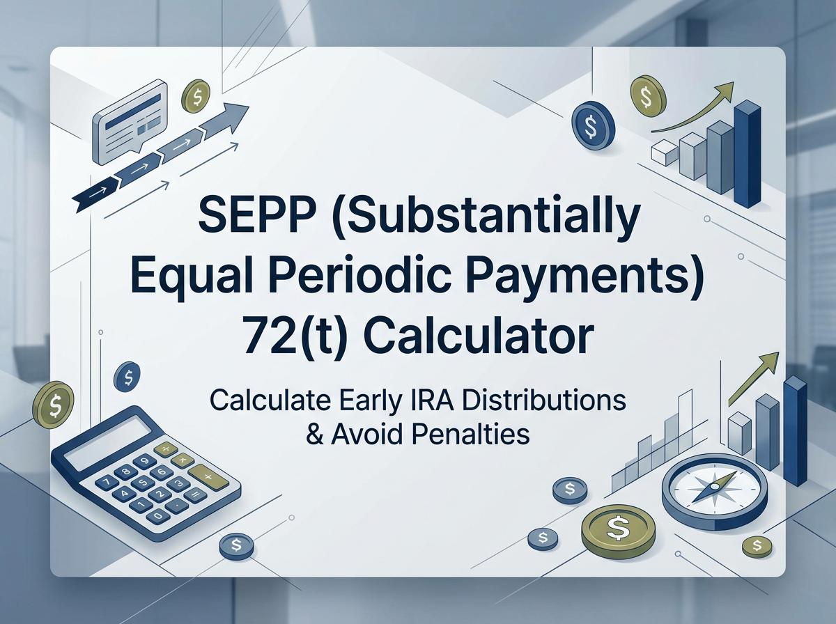 Avoid the 10% IRS early withdrawal penalty with our accurate SEPP 72(t) Calculator. Easily calculate your Substantially Equal Periodic Payments using IRS-approved methods to safely access your retirement funds early.