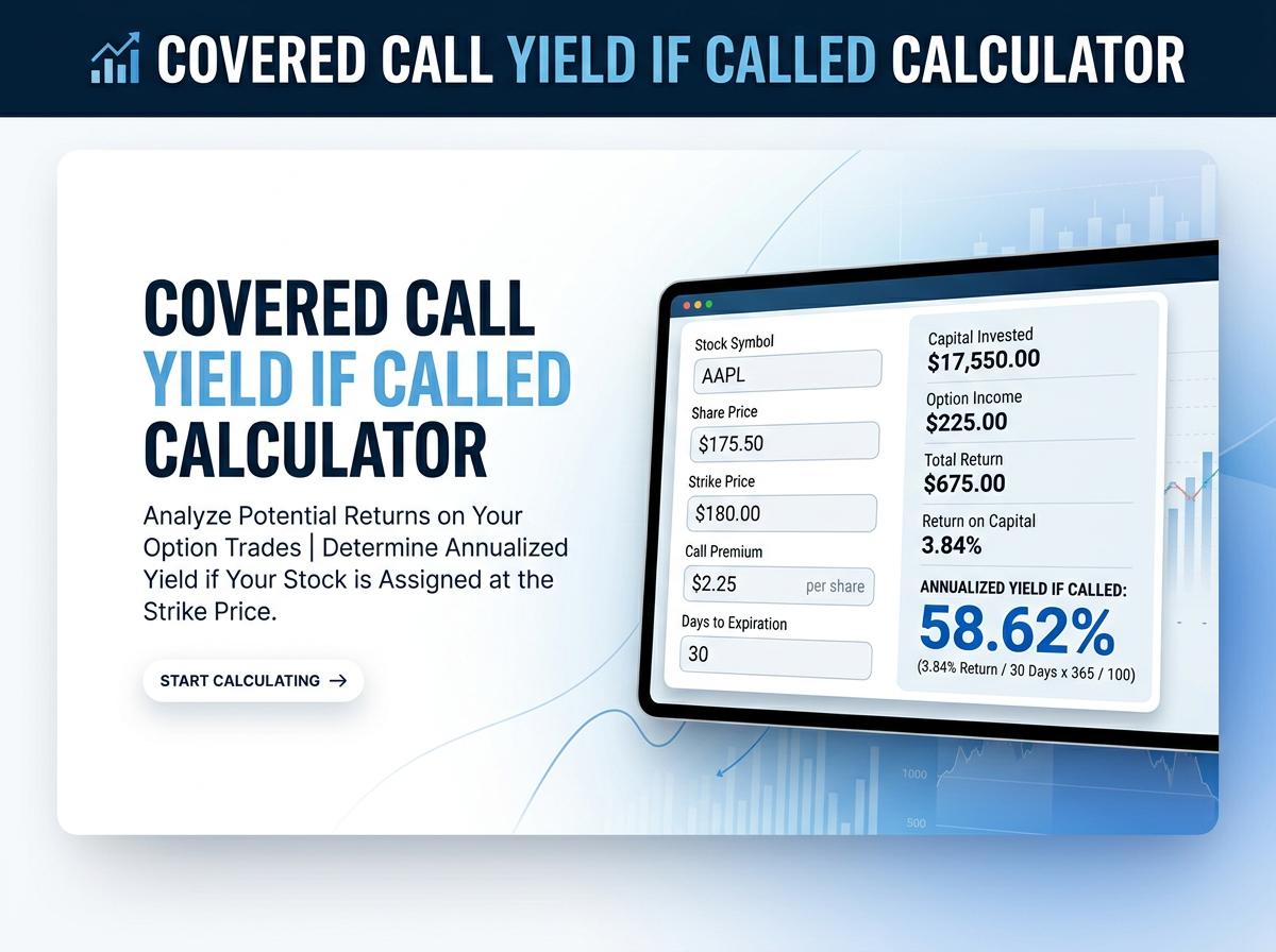 Maximize your options trading profits with our Covered Call Yield if Called Calculator. Instantly compute your total return, annualized yield, and maximum profit potential if your shares are assigned at expiration. Enter your stock price, strike price, and premium to make smarter, data-driven trading decisions today.